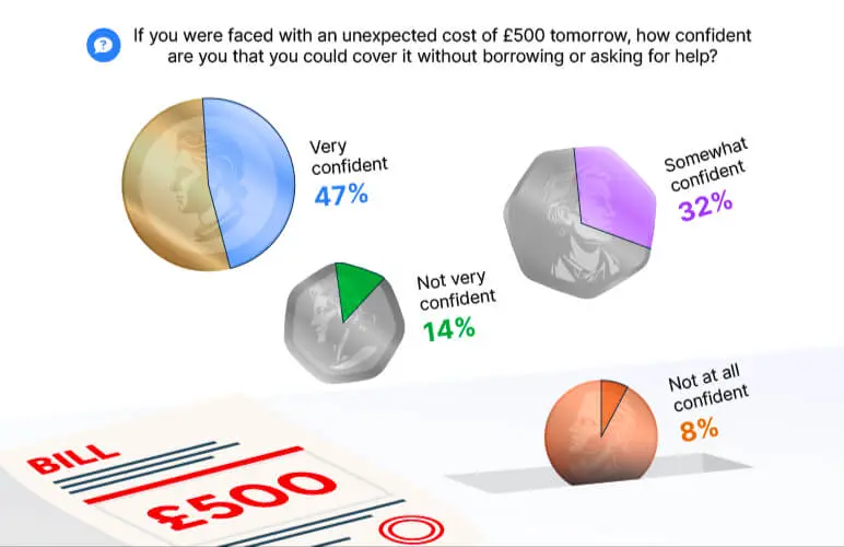 - Only 47% of people would be very confident covering a £500 cost without borrowing or asking for help.